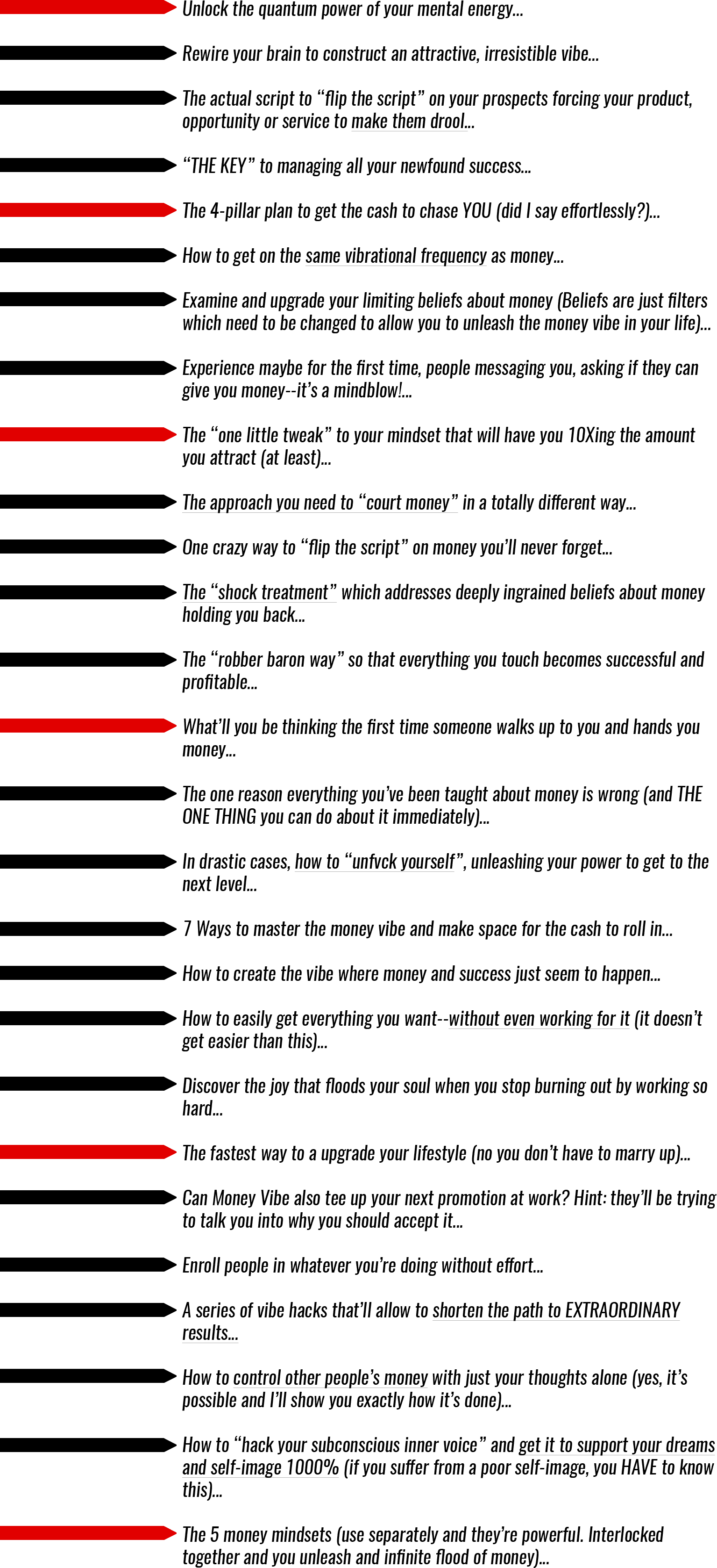 What’s really great is my Money Vibe approach can be applied to sales, marketing, networking, investing, money attraction, fast cash...
